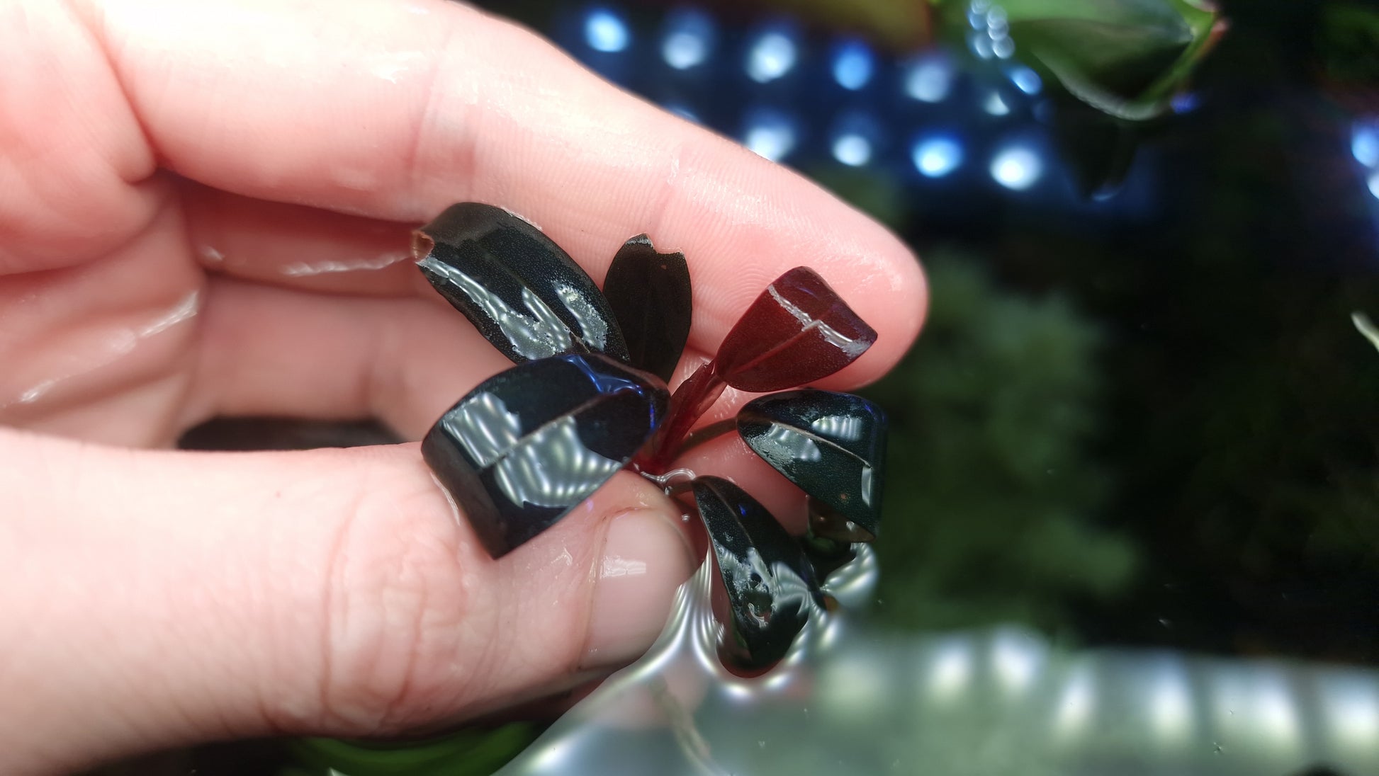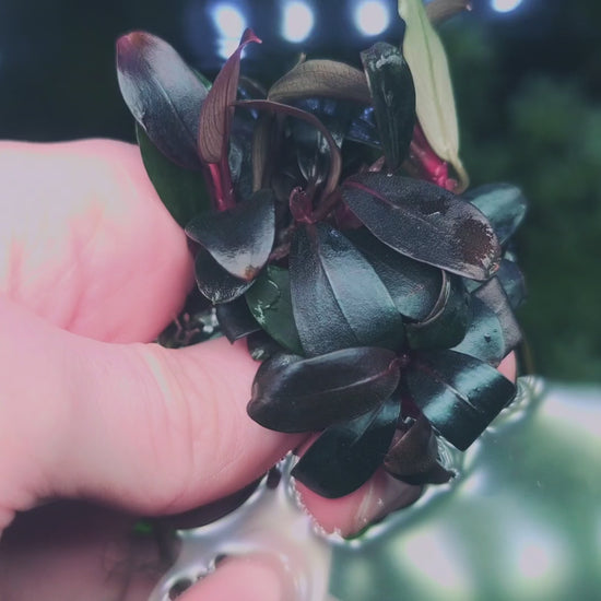 Rarità Esclusiva: Sei pronto ad aggiungere un vero pezzo da collezione al tuo acquario? La Bucephalandra 'Shine' non è una pianta qualsiasi: è una rarità che trasforma l'acquascaping in arte. Le sue foglie sono un biglietto da visita unico: spesse, lisce e così lucide che sembrano appena lucidate. Il colore? Un verde scuro intenso, quasi nero — l'eleganza fatta pianta! Ma il vero spettacolo arriva sotto una buona illuminazione e con l'uso costante di CO₂: l'iridescenza si accende, regalando un riflesso bluastro metallico che la fa sembrare una gemma sommersa. E se vedi qualche foglia rossa nascere... congratulazioni, hai il bonus!