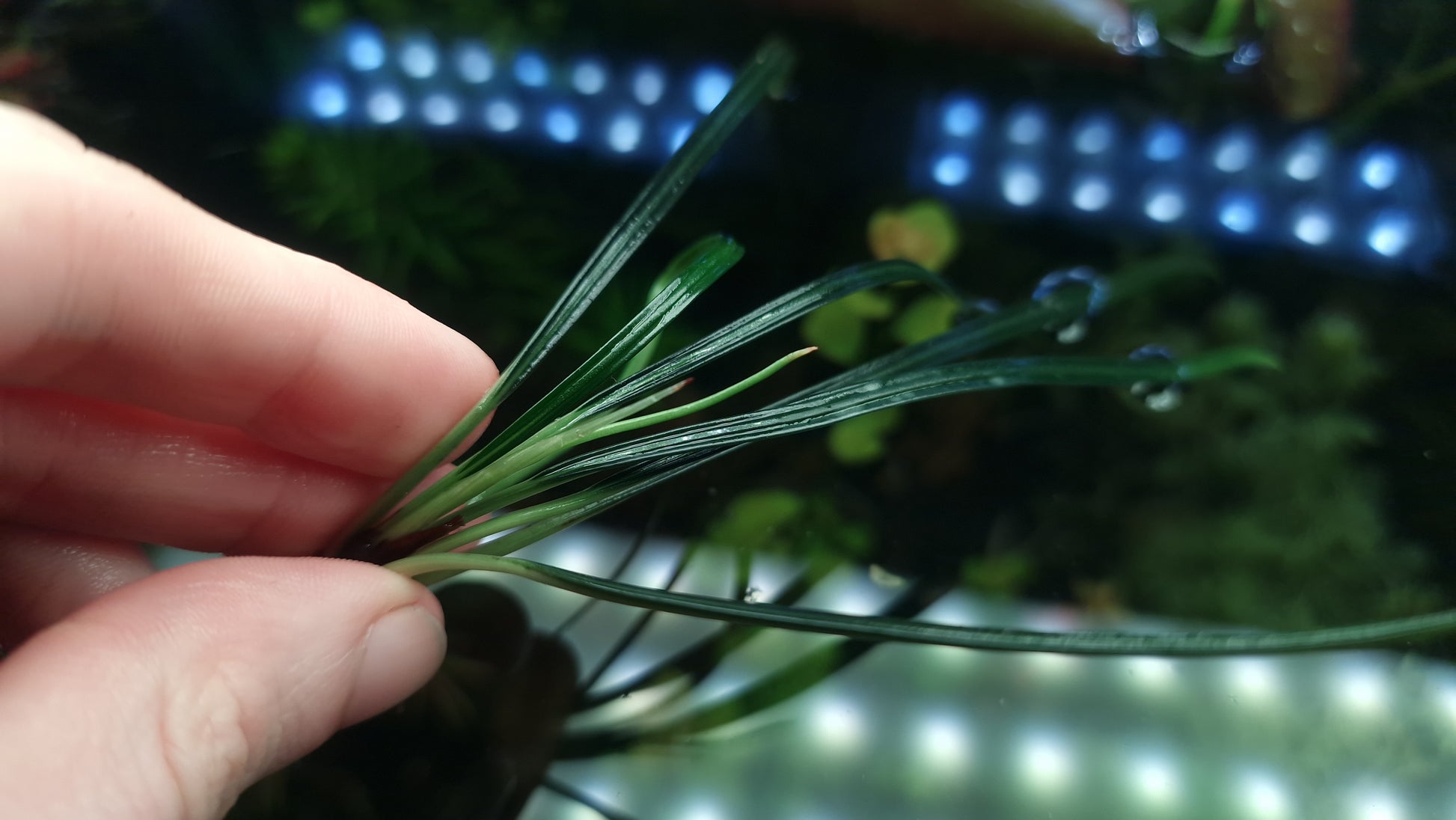Pour Vrais Connaisseurs (Niveau PRO): La Fenestratarum callum n'est pas une plante pour débutants, mais un véritable trophée pour ceux qui aiment l'aquascaping d'élite! C'est une rareté absolue, une Aracée rhéophyte, parente de la Bucephalandra, mais avec un port unique qui donnera à votre aquarium l'allure d'une forêt tropicale submergée. Ses feuilles sont étroites et allongées, d'une magnifique couleur vert émeraude qui, sous une lumière intense, s'anime d'un effet velouté et légèrement irisé. Ce qui la rend spéciale, c'est le rhizome mince et rampant, qui s'étend horizontalement, créant un réseau vert dense sur le substrat ou les décorations. C'est l'élément parfait pour conférer un sentiment de maturité et de naturalité extrême à votre aménagement.