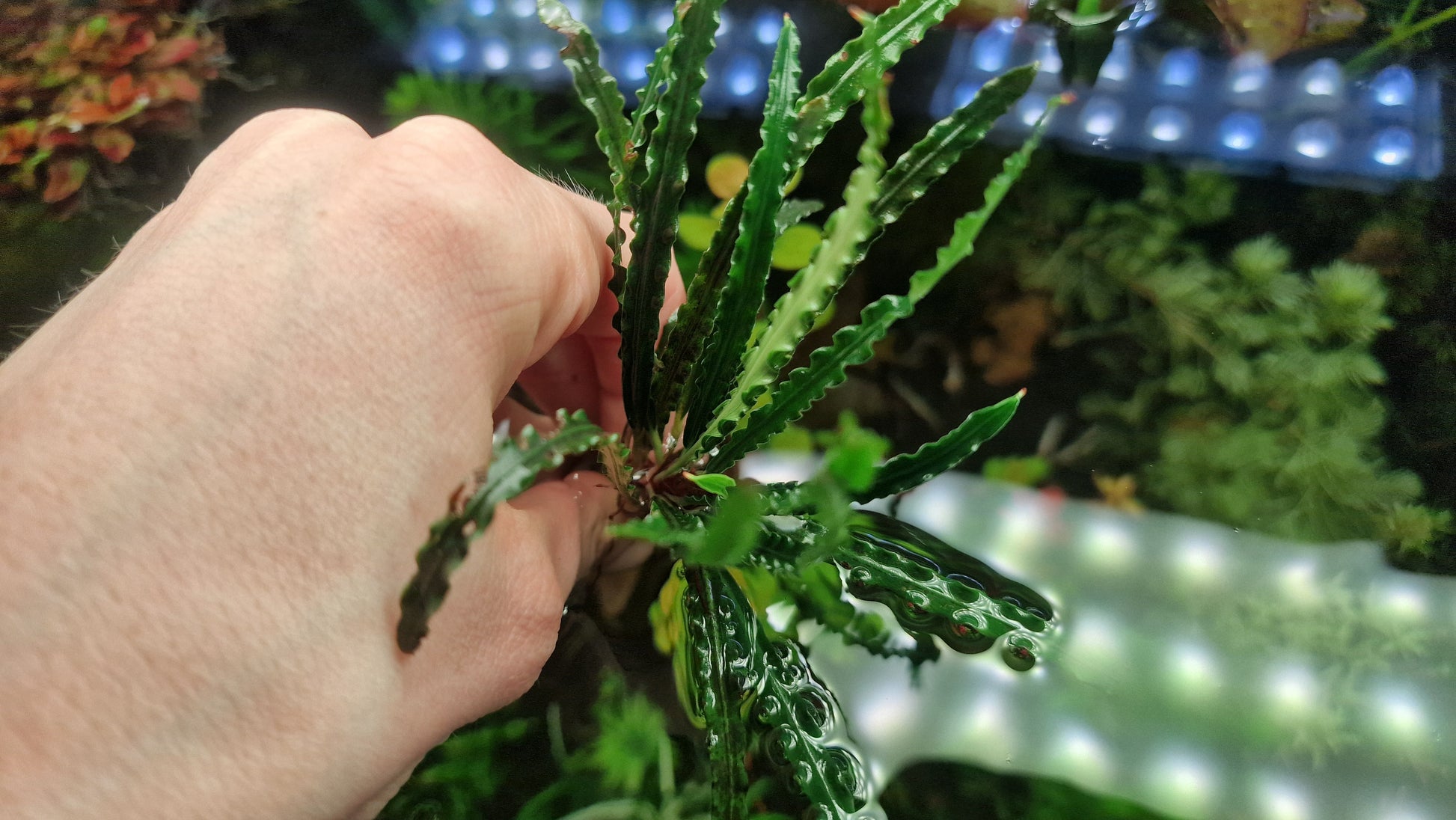 Sie ist eine langsam wachsende Rheophyte, die perfekt auf Wurzeln oder Steinen verankert wird (das Rhizom hasst es, eingegraben zu werden). Sie verlangt nur eine moderate Wasserströmung und eine ausgewogene Ernährung: Verwenden Sie ein konstantes Flüssigdüngeprotokoll (und sparen Sie nicht an Eisen und Kalium), um zu verhindern, dass sie eifersüchtig wird und Löcher in ihre Blätter bekommt. Für wettbewerbswürdige Ergebnisse empfehlen wir, das Estimative Index-Protokoll mit gezielten Produkten wie Seachem Advance und der 2hr Aquarist Index-Linie zu kombinieren. Diese Pflanze ist das Detail, das ein schönes Aquarium von einem Kunstwerk trennt.
