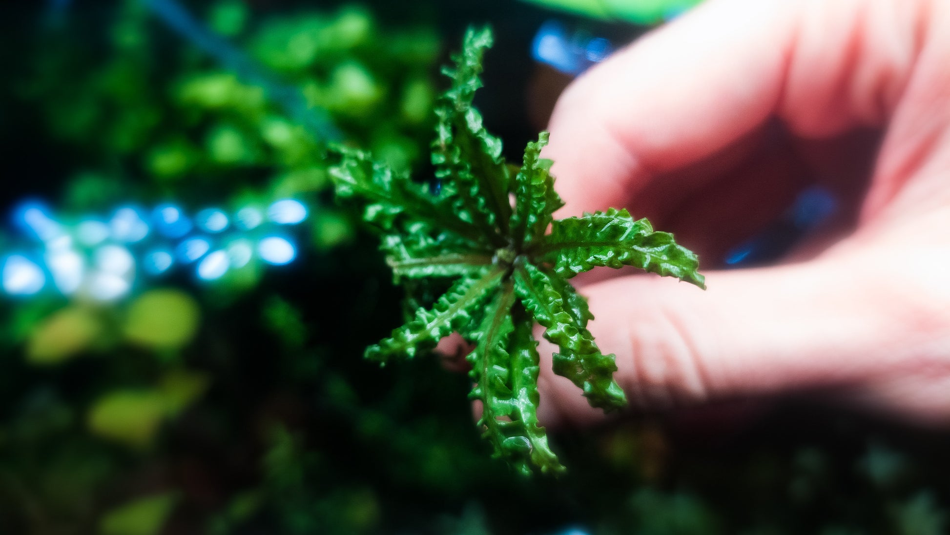 Les feuilles sont étroites, fortement ondulées et disposées en étoile, avec une croissance compacte et ordonnée. Sa vitesse de croissance est moyenne, ce qui la rend adaptée aussi bien aux nano aquariums qu’aux aquascapes plus spacieux.